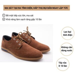 Làm sạch khô 100%: Bạn hoàn toàn không cần dùng nước, giúp bảo vệ form dáng và màu sắc nguyên bản của giày, tránh tình trạng ẩm mốc.
