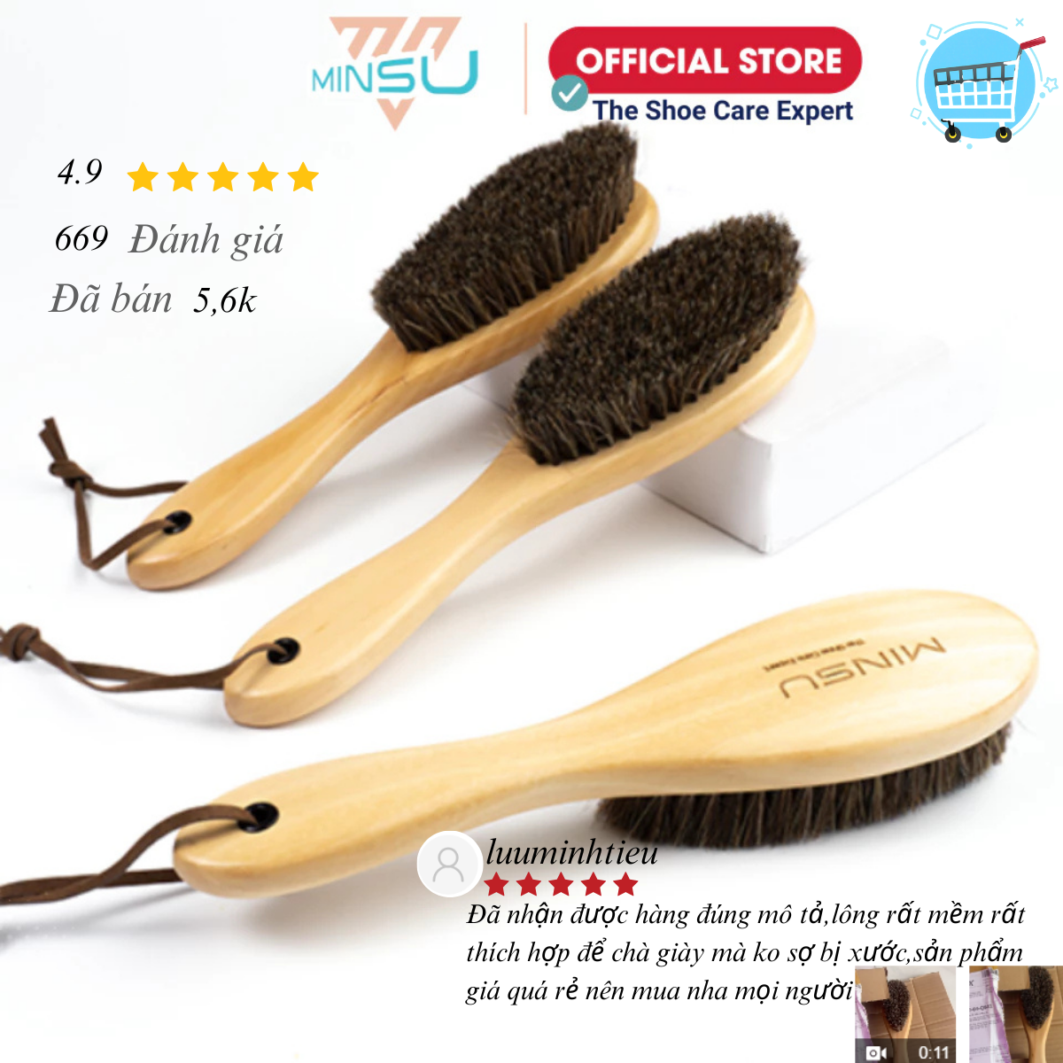 Bàn Chải Đánh Giày Lông Ngựa Có Tay Cầm MINSU M2416 Giúp Vệ Sinh, Đánh Bóng Xi Giày, Tiện Ích Và Đa Năng