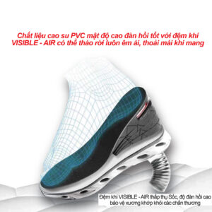 + Nấc Trên cùng dày 3cm. Lớp này được cấu tạo từ 2 lớp, lớp đầu tiên là vải nhung thoáng khí, giúp giảm mệt mỏi cho đôi chân. Lớp thứ 2 là đệm khí nằm giữa miếng lót. Lớp này giúp miếng lót êm ái, tạo cảm giác giống như đôi chân đang được ngủ trên chiếc nệm lò xo. Lót chứa đệm khí giúp đôi chân được ma sát, giảm lực từ mặt đất lên đôi chân khi bạn di chuyển.