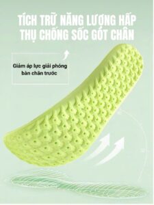 Hấp thụ sốc gót chân: Tích hợp công nghệ tích trữ năng lượng, giảm chấn động tác động lên khớp gối và cột sống.