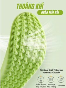 Hệ thống lỗ thoáng khí: Bề mặt lót có hàng ngàn lỗ li ti giúp lưu thông không khí, giải phóng nhiệt lượng từ bàn chân trước, ngăn chặn tình trạng bí bách, đổ mồ hôi.