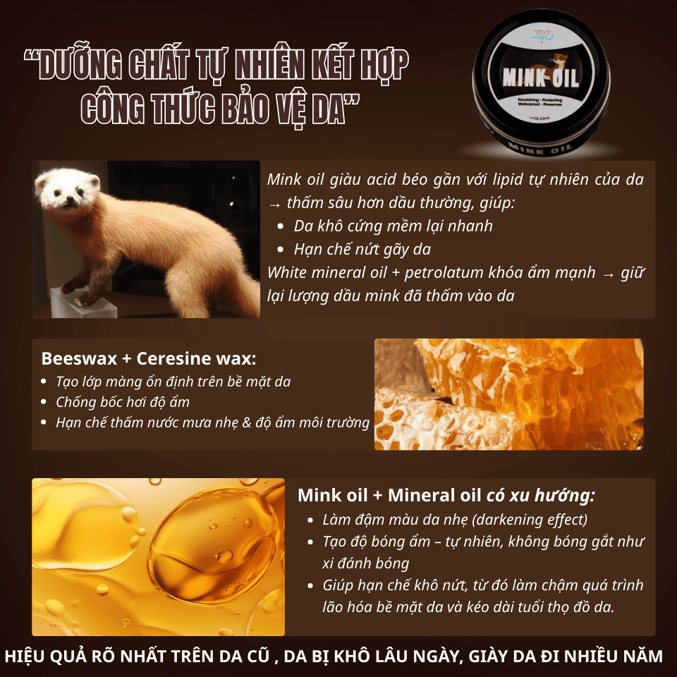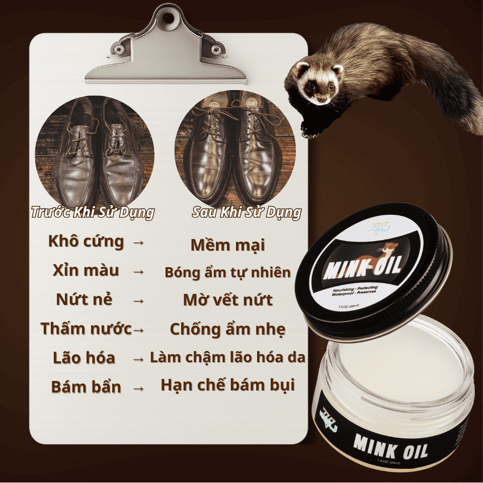 Mỡ Chồn MINSU Mink Oil M7967 Giúp Phục Hồi, Dưỡng Sâu Và Làm Mềm Da, Dùng Cho Giày, Đồ Da, Túi Xách, Ghế Sofa, Nội Thất